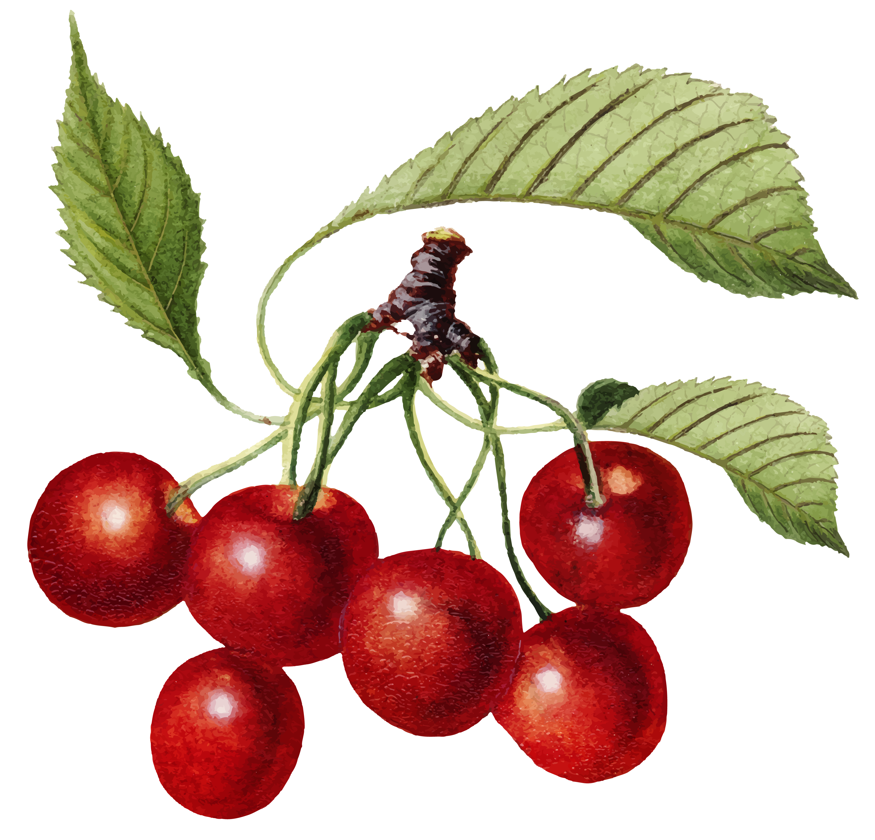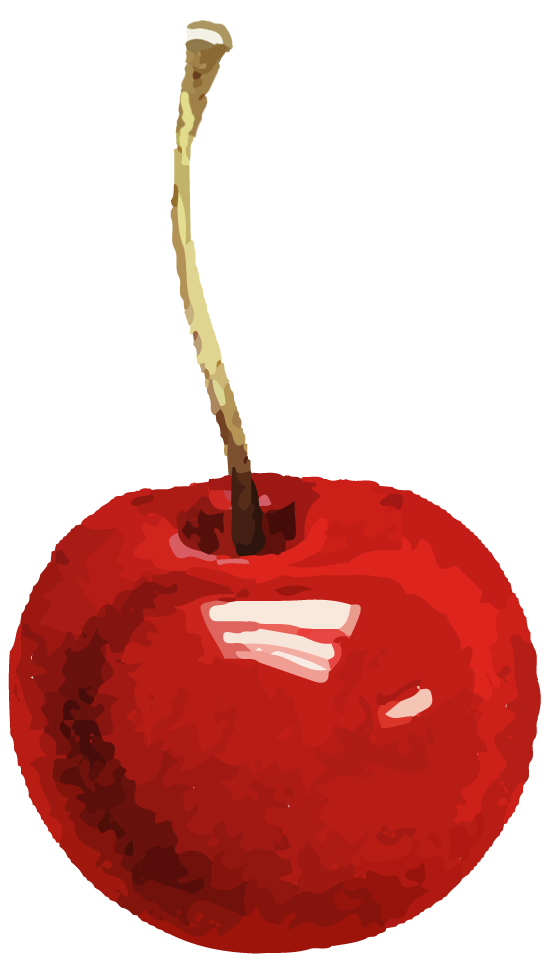 A small, round fruit with a pit, typically red or black when ripe, and a sweet or sour taste, produced by the cherry tree (genus Prunus). Cherries are often used in desserts, jams, and beverages.